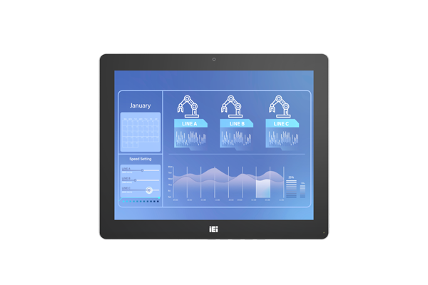Проекционно-ёмкостный сенсорный экран 15", антибликовое покрытие, Anti-UV покрытие. Пылевлагозащита передней панели IP65. Разрешение 1024 x 768, яркость 350 кд/м² , контрастность 1000:1. Кнопки OSD на нижнем торце рамки.