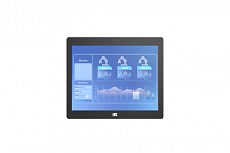 Проекционно-ёмкостный сенсорный экран 12.1" (16:9), антибликовое покрытие, Anti-UV покрытие. Пылевлагозащита передней панели IP65. Разрешение 1280 x 800, яркость 1000 кд/м² , контрастность 1200:1. Встроенные динамики, камера, USB 3.0 хаб. Кнопки OSD на нижнем торце рамки.