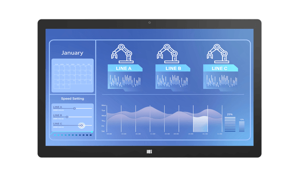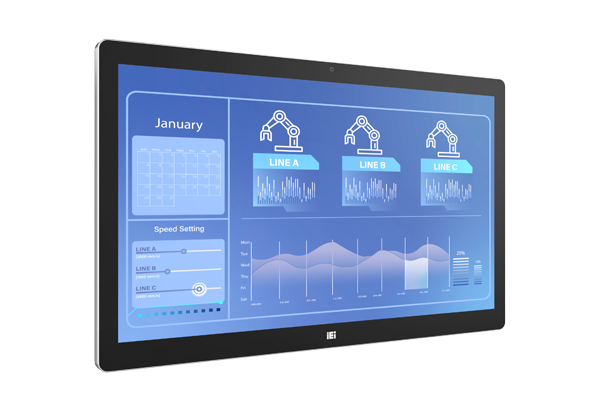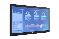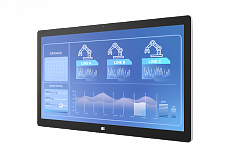 Проекционно-ёмкостный сенсорный экран 23.8" (16:9), антибликовое покрытие, Anti-UV покрытие. Пылевлагозащита передней панели IP65. Разрешение 1920 x 1080, яркость 350 кд/м² , контрастность 1000:1. Кнопки OSD на нижнем торце рамки.