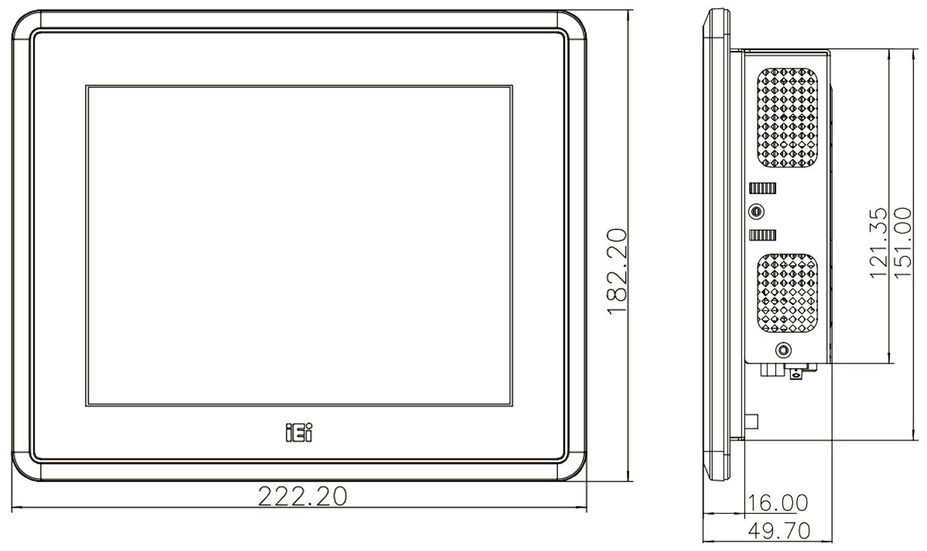 Безвентиляторный панельный компьютер iEi PPC2-C08-EHL-J1/8G Дисплей 8" (SVGA) с проекционно-ёмкостным сенсорным экраном; антибликовое покрытие (AG), IP65 (передняя панель), процессор Intel Celeron J6412 (Elkhart Lake) ,TDP 10W, 8GB LPDDR4x (распаяна), питание 12-24В DC.